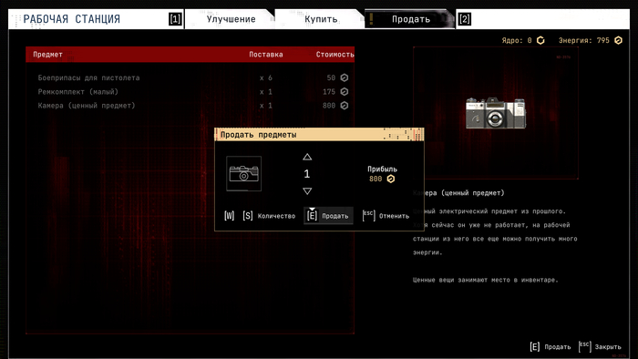 Энергию, кстати, можно тратить ещё и на покупку патронов, аптечек и ресурсов для крафта, чем я несколько раз пользовался. Это бывает необходимо, потому что игра постоянно проверяет игрока на прочность бешеной нехваткой ресурсов.