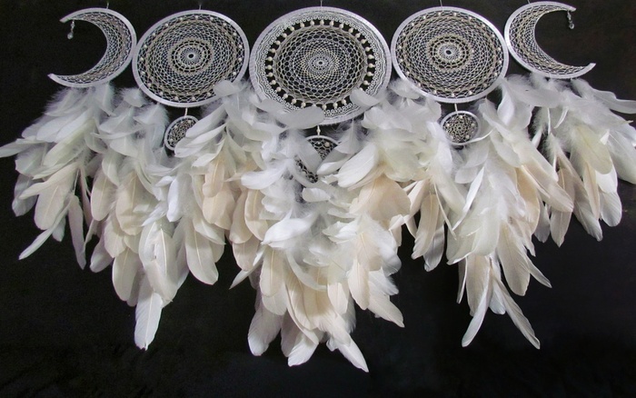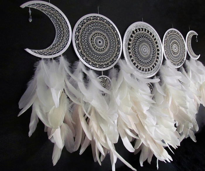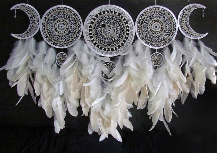 Любой из этих ловцов красиво будет смотреться бби по отдельности. Особенно мне нравится центральный с его кружевным плетением. Но и полумесяцы тоже интересные, хоть с ними и пришлось повозиться) вообще самая большая сложность этой работы - это сделать ловцы одинаковыми) получилось шикарно, я считаю!