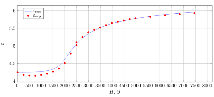Все оборудование довольно старое, работает хорошо в основном только после мата в его адрес. В той же комнате стоит оборудование, на котором работал сам Фредерикс -- основатель теории, а это ни много ни мало 27 год. Оно рабочее и ждет момента, пока оно таки понадобится. В результате их работы получается вот такой график.