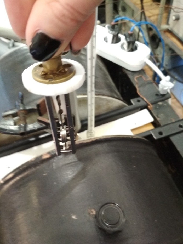 Снизу большие круглые и черные -- катушки, создающие сильное магнитное поле. Между ними и установлена ячейка.