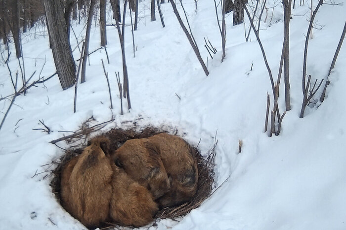 Фотоловушка заповедника. Гайно (гнездо) кабанов