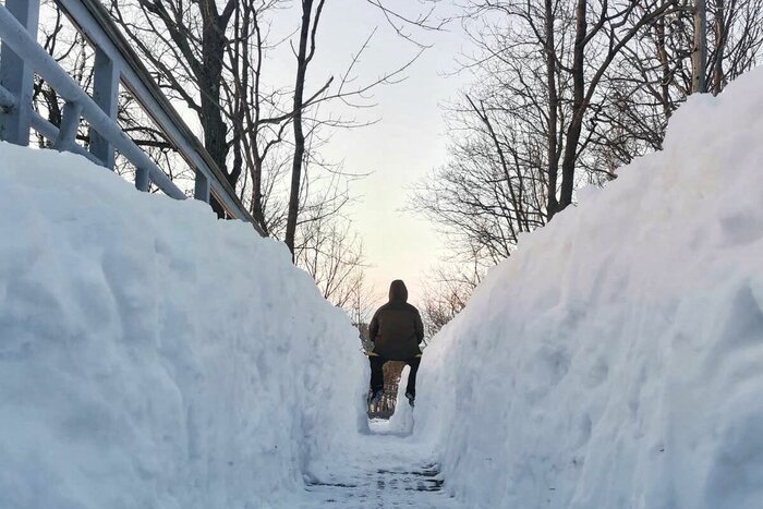 –Прошлой зимой по выходным работал маршрут «Стрельная гора», и как-то после снегопада мы отправились его чистить... Два настила: 300 и 500 метров.