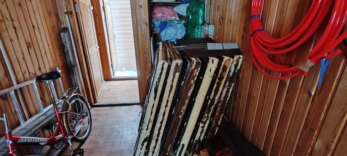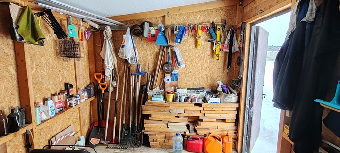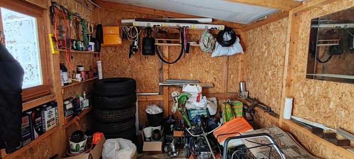 Есть такое опасное слово «пригодится», с которым надо быть очень аккуратным. Именно по этой причине короткие обрезки от доски-пятерки постепенно заняли половину правой стены, затем, товарищ попросил на сезон подержать свою циклёвочную машину, уже 6 лет стоит, ну и кроме нужных инструментов и шин, стал постепенно накапливатся вский хлам, типа ящичков и горшочков для цветов, груды шампуров и угля, баночки всякие разные и прочее барахло, которое супруга называет «нужными» штучки. Во время стройки для строителей првез на участок хорошую бытовку, в которой были нары, стол, полки, электричество- удобная и полезная вещь. После завершения стройки я решил сделать инвентаризацию «нужных» штучек и все ,что копится и не используется годами, просто выкинуть или отдать бесплатно. Когда я выставил их на улицу, жена увидела, и часть этих штучек переехала в бытовку.. В прошлом году мы поменяли шесть окон на веранде, поставили пластиковые , сняли прежние двойные деревянные окна вполне приличные, не знаю, зачем? Просто супруге очень хотелось, а я не смог отказать. Кстати, если кому нужны шесть деревянных рам с коробками размером 118х118, пишите, всего 5500 руб, но только самовывоз, ещё скину 500 руб на бензин. Так вот, возвращаясь к инвентаризации и «пригодится, все это копилось, и в один прекрасный момент я решил, что если впереть возникаю сомнения оставить или отдать, это значит отдать, не хранить и уехал в долгосрочную командировку.Приезжаю в июле , пошёл в огород ополоснуться из бочки, принял водные процедуры, иду открываю сарай , и меня чуть кондратий не хватил. Мало того, что там все завалено под завязку, так нет доброй половины моего инструмента, а тот, что остался, со следами жёсткого использования. Оказалось, что супруга нанимала узбека для покоса участка, не контролировала этого товарища , который быстро просек фишку, и моими дорогими немецкими тримером и газонокосилкой косил за деньги половине деревни, убил сварочный, болгарку, циркулярку и в хлам перфоратор « Bosch». С супругой,конечно, строго поговорил, а вот этого товарища хотел посадить в погреб, потому что с него, как с козла молока, ничего не взмоешь, но он увидя меня издалека, все понял и сбежал. Уверен, что в следующем году появится, никуда не денется, будет отрабатывать.