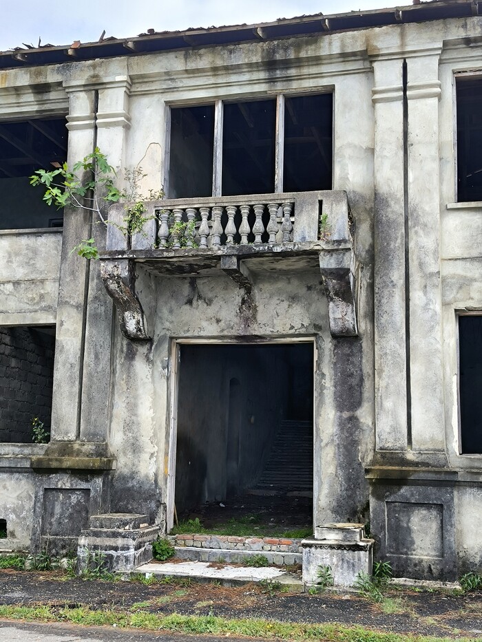 В этом здании стёкла целые - удивительно! Но крыши нет - обрушилась