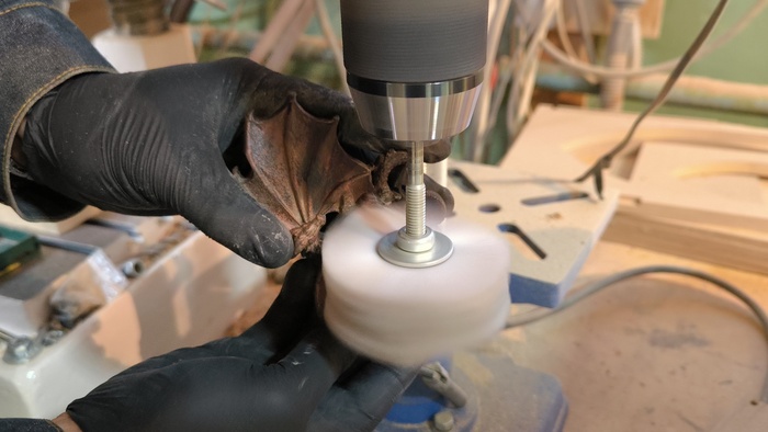 Ещё раз сушу и снова щетки - убрать вставший ворс. Финиш - мелкая наждачка.