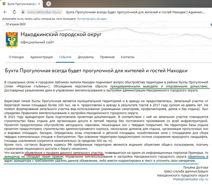 Доктор географических наук Ю.А.Наумов отмечает: "Находкинское побережье неповторимо по красоте и славится самым большим количеством бухт и мысов". Важно сохранить удивительную красоту этих мест.