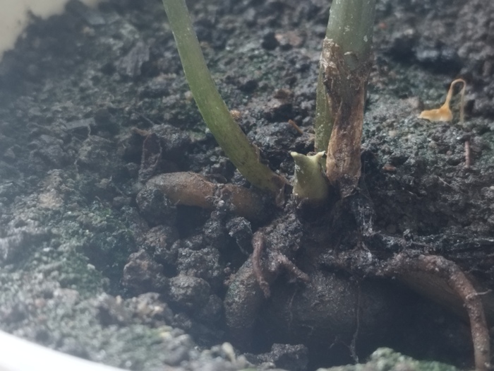 Если гниль появилась на листьях, скорее всего, поражено и корневище. Причина — перелив и слишком плотный грунт. Необходимо обработать клубень фунгицидом, заменить почву и дренаж, так же стоит продезинфицировать горшок при посадке.