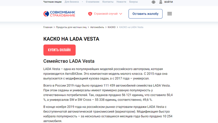 Виды покрытия страхования каско на Lada Vesta