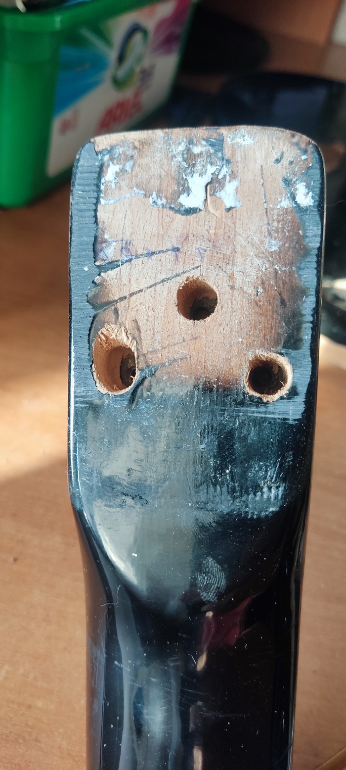Таким образом весь комплекс работ по переделке получается сопоставимым с изготовлением новой гитары по уму. Голова взрывалась от процесса поиска нормальных тюнеров или бриджей в сборе под безголовы. В конце концов я решил, что лучше сделать более стандартную и рабочую карбоновую гитару с нуля, чем пытаться воскресить пациента, о чём я мастеру и сообщил.
