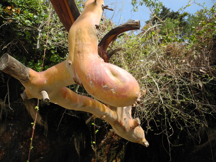 На берегу растет дерево Arbutus с каким-то странным выростом на ветке, здесь много этих деревьев но никогда прежде не видела такое. Может ботаники подскажут что это и почему?