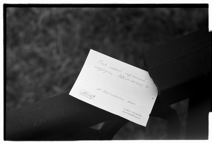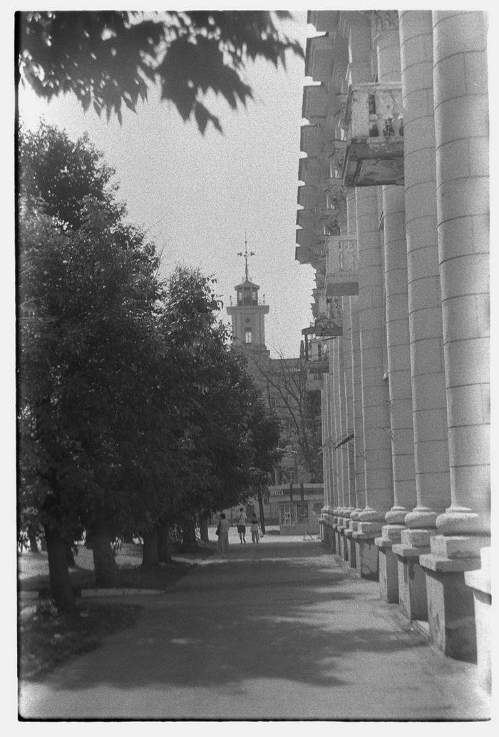 Разумеется, у одного фота шторка открывалась наполовину. Ожидаемо, самую первую плёнку я порвал. Ну и чтоб два раза не вставать, ещё и засветил. Но кое-что проявить удалось. Для первой проявки пользовался помощью фотолаборатории для подстраховки: чтобы точно определить, работает ли фот.