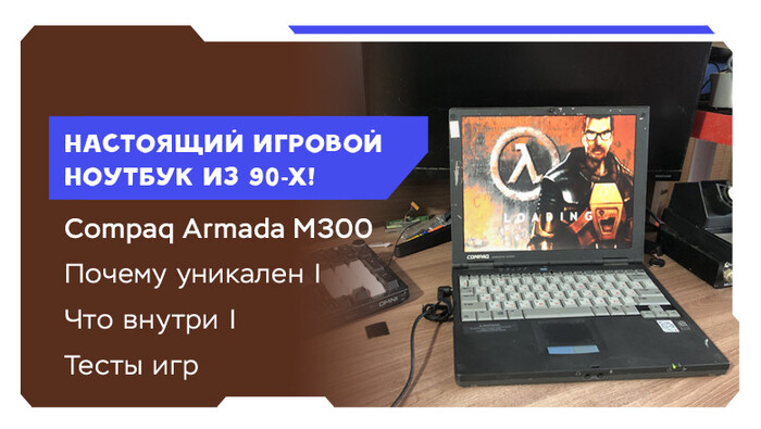 Я большой фанат ноутбуков и любых схожих с ними устройств. В моей небольшой коллекции есть самые разные модели: с десктопными Pentium 4, с дискретными GPU от S3 Graphics и даже парочку «отвальных» ноутбуков с MXM-видеокартами. Однако одна модель особенно выделяется — ведь Compaq M300 был не только мощным и при этом компактным ноутбуком родом из 1999 года, но ещё и игровым — благодаря дискретной графике от ATi. Как выглядел игровой ноутбук из 90-х, что у него было внутри, на что он был способен и для чего он мне нужен в 2025 году — читайте в сегодняшней статье!
