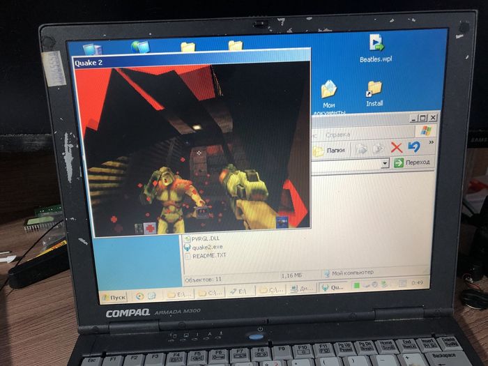 Второй игровой ноутбук в моей коллекции — Compaq Armada M300, который вышел всего через год после 7800 и относился к классу топовых субноутбуков. Помимо компактных размеров, M300 предлагал Pentium II или III, всё те же 64 мегабайта SDRAM-памяти и ATi Rage LT Pro в качестве GPU — а это был уже совсем другой уровень графики и производительности...