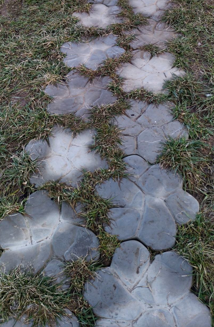 Если вы хотите сохранить естественный вид сада, но при этом сделать его удобным для прогулок, попробуйте вариант "плитка в траве". Для этого используются небольшие плитки, которые укладываются прямо в газон или среди растений. Такие тропинки выглядят очень органично и не нарушают гармонию сада. Они особенно хороши для зон, где вы хотите подчеркнуть близость к природе: например, рядом с цветниками, прудом или в тени деревьев.