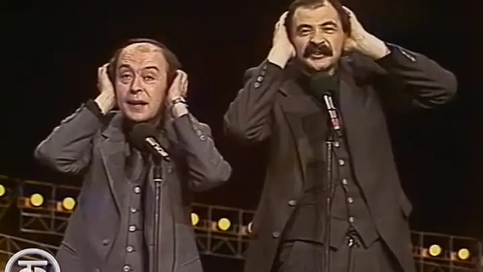 И не менее популярный в народе в 80-х номер Казакова и Владимира Винокура "Склероз на двоих", там где "Доктор, у меня - ЭТО!...", "Ну, это мелочи..." и "В кузне травел сидечик..."