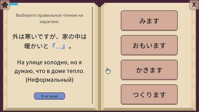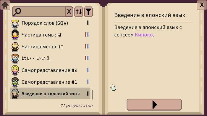 Если вы попали в локацию, где ничего не понятно, то, скорей всего, в этой же локации есть NPC с новыми словами и правилами японского языка. Всё выдаётся постепенно, и есть время освоиться с лексикой.