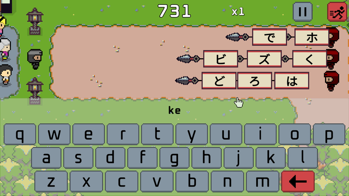 Наверно самая полезная мини игра про ниндзя, т.к. можно отработать печатание букв. Особенно, если у вас не стоит языковой поддержки японского (например, Mozc для Linux).