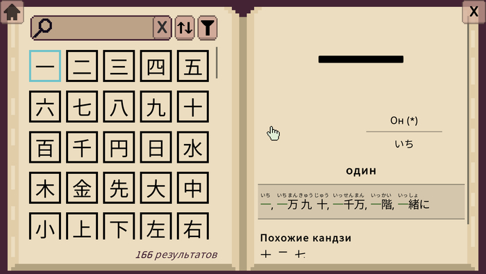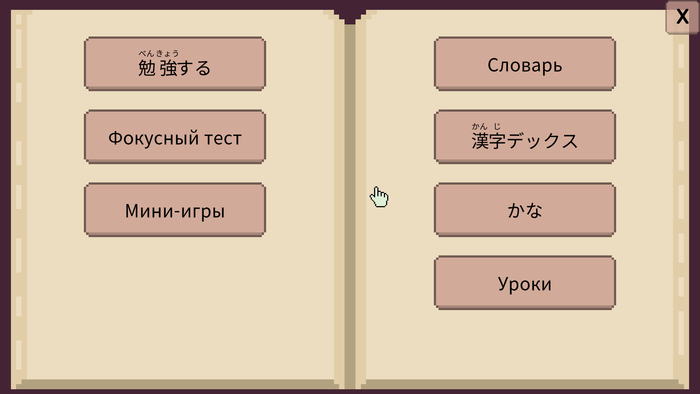 По анологии с покедексом у нас есть свой кодекс со словарём, кандзи, уроками, каной, тестами по найденным словам и мини игры.