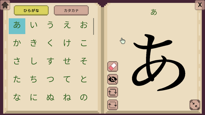 Тренажёру с рисованием кандзи, к сожалению, не хватает интерактива и не испльзуется в игре. Например, Kanji! или Duolingo говорят об ошибке, если линию не так провёл, тут такого нет.