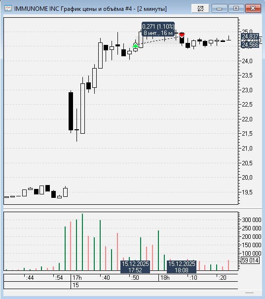 Утром рамка выглядела спокойно. S&P500 в слабом, но плюсе, без макро-сюрпризов, фон — нейтральный. Была подсвечена IMNM: положительная новость, которая дала импульс на премаркете. Бумага в игре.