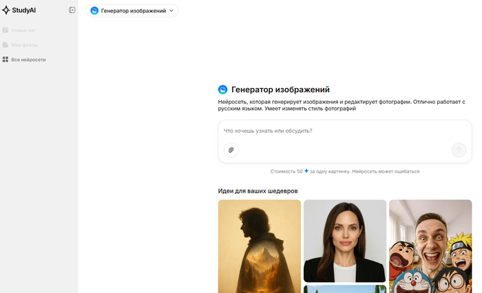 Study AI — агрегатор нейросетей с единым русскоязычным интерфейсом и доступом к множеству моделей, где в одном месте можно генерировать тексты, изображения, видео и презентации.