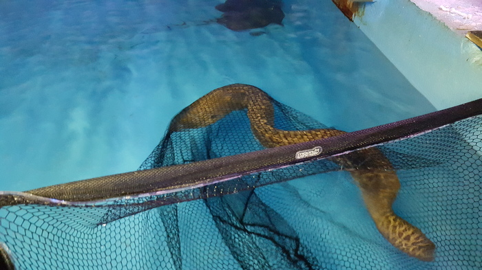 Вчера к нам в океанариум приехала очередная поставка рыбы, в этот раз из Шри-Ланки. Среди прочих там была небольшая стайка платаксов орбикулярисов (Platax orbicularis). Эти удивительные рыбы в юном возрасте имитируют опавшие мангровые листья, болтающиеся в прибрежных волнах. Не только форма тела и окраска молодого платакса имитирует подгнивший листочек, но и характерные качающиеся движения показывают хищникам - я вовсе не рыбка! И когда мы высаживали платаксов в карантинный аквариум, то заметили что-то неладное на одном из них: