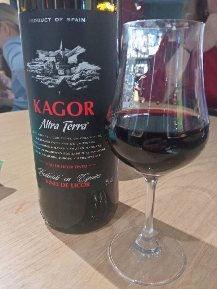 Кагор Altra Terra правда не французский, а испанский, произведен из винограда, выращенного в Ла-Манча, близ города Толедо. Виноград использовался Гарнача Тинторера с закреплением винным спиртом-ректификатом. Цвет насыщенный, благородно отдает малиново бардовым. На свет практически не прозрачный. Ну да, практически кровь. Ножки на бокале тягучие и плотные на вид. Аромат типичный для гарнача – инжир, чернослив. Но нотки изюмистости винограда намекают, что в бокале не сухое вино, а что-то покрепче. Кстати. крепость Altra Terra 15%, что немного меньше привычных отечественных кагоров и содержание сахара заметно меньше. Но во вкусе сахаросности предостаточно, без какой-либо приторности и столь плотного тела как обещали ножки. Очень питкое вино, не смотря на то, что это явно десертная история. Во вкусе хватает и вишни, и чернослива и немного на заднем фоне перца и горьких специй.