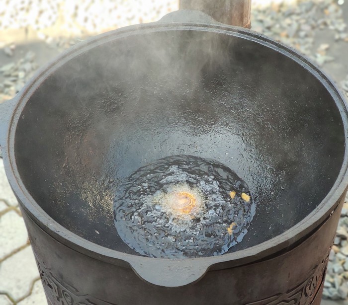 Масло и казан оставляем остыть на балконе.