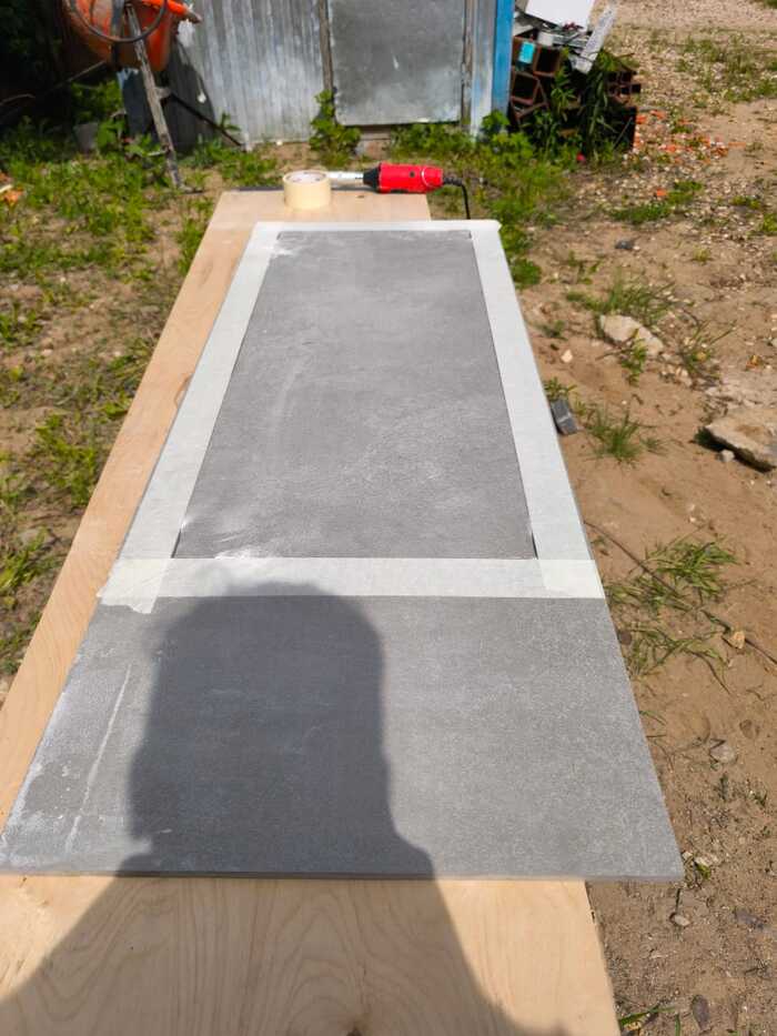 Потом приезжает плитка 1800х1200, и это была боль для меня, но я справился. В процессе заказчик всё подкидывает идей. Можешь, говорит, мойку из керамогранита собрать? Скидывает видео на Ютубе, как это делают Мастера (вот с большой буквы, парни, кто это делает, да ещё и делится - уважение).