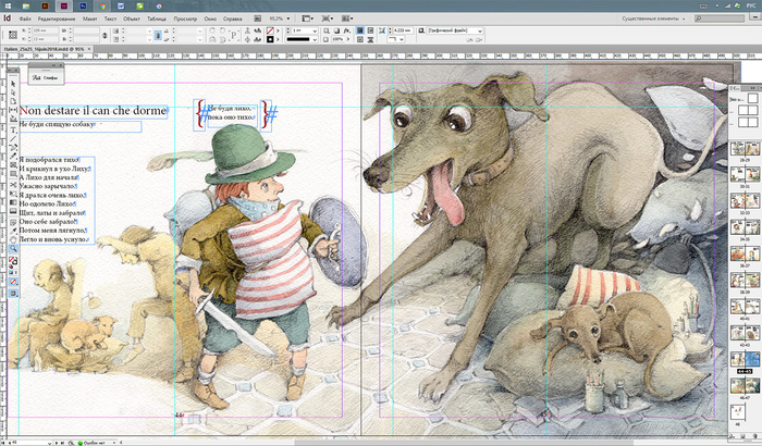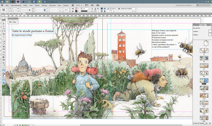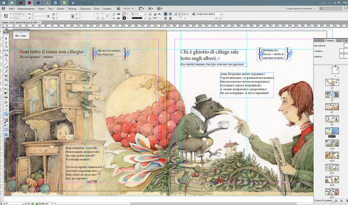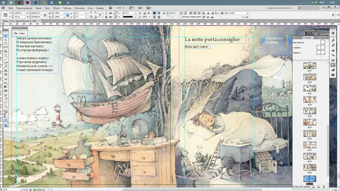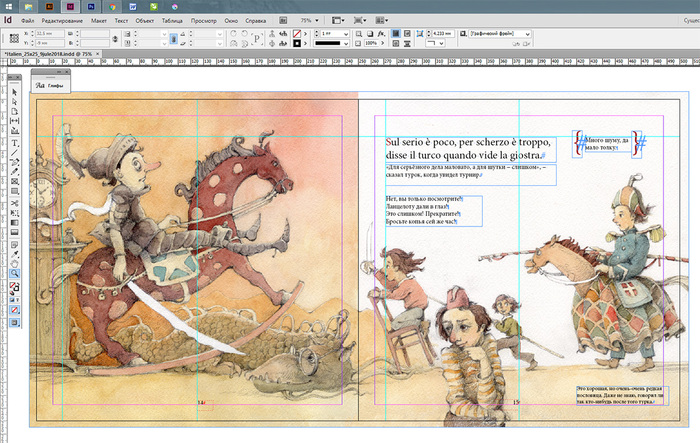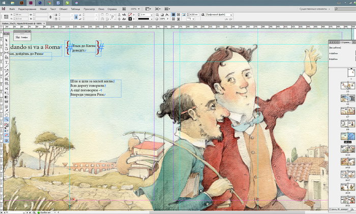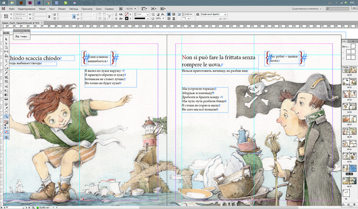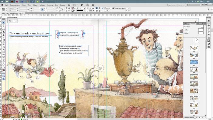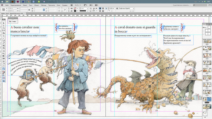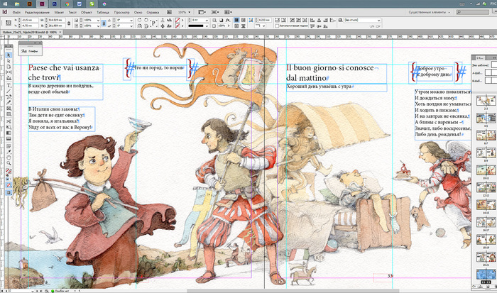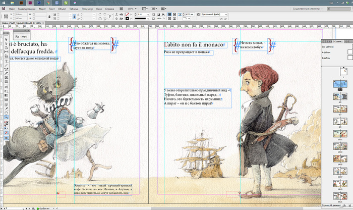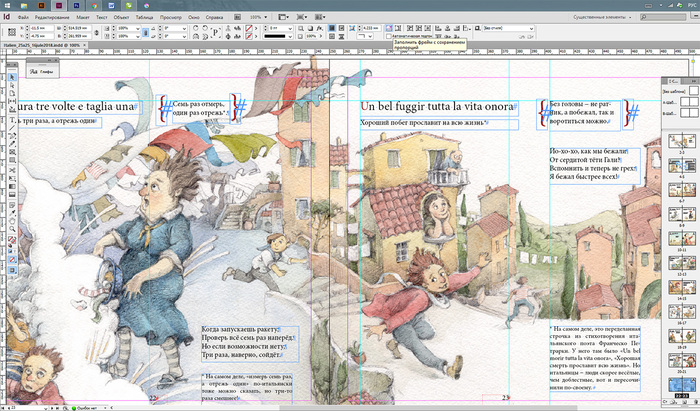 книга посвящена итальянским пословицам и русским аналогам. На картинках PrintScreen с монитора. из программы верстки. Т.е. это издательская кухня. Напечатано без этих вспомогательных символов, просто понравилась идея так сохранить работу. Память о сча