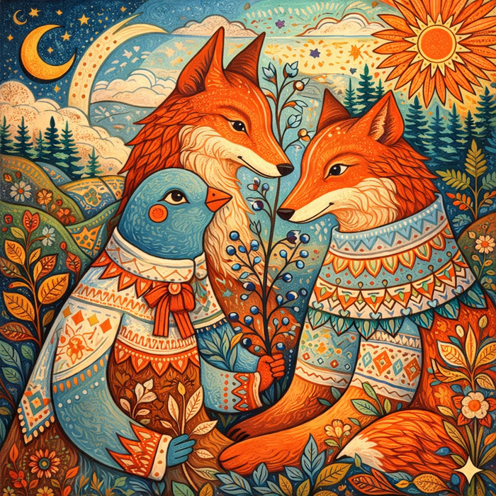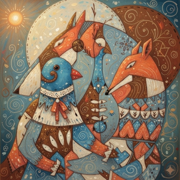 Рельефное панно №1: кормление птенца кусачек пингвиньим способом (мама кусачка отрыгивает полупереваренные гвозди птенцу-кусанчику).