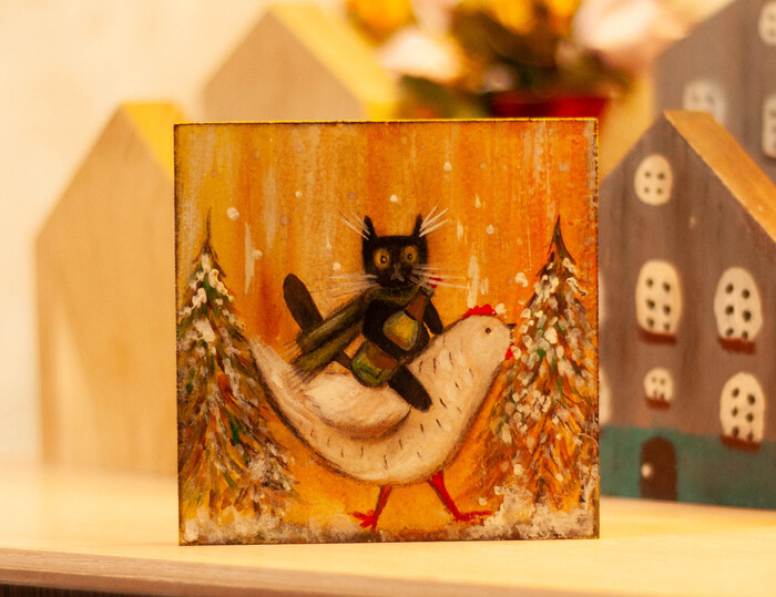 Котоидеи? Безусловно, не только котики. На этот раз идей было много. Но кот на курице — это уже классика моей живописи.