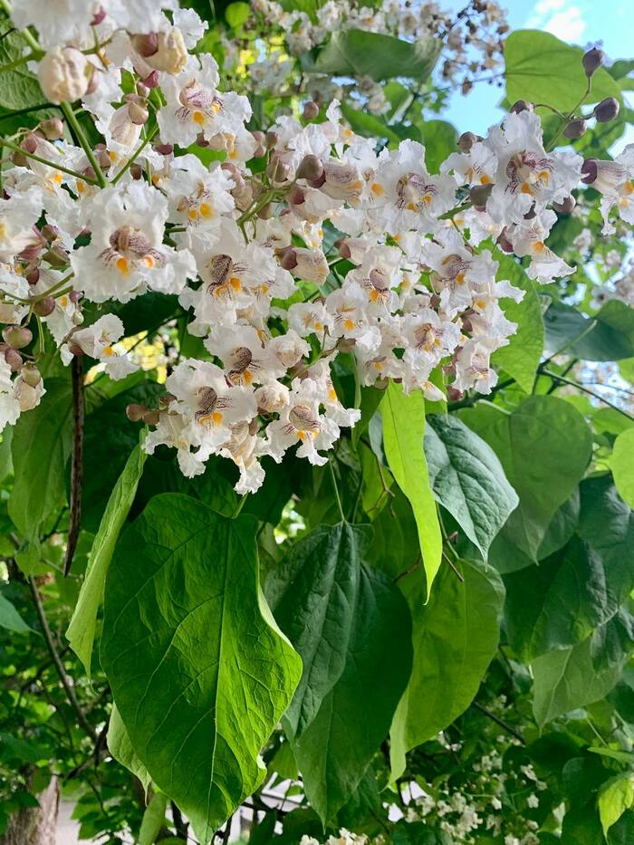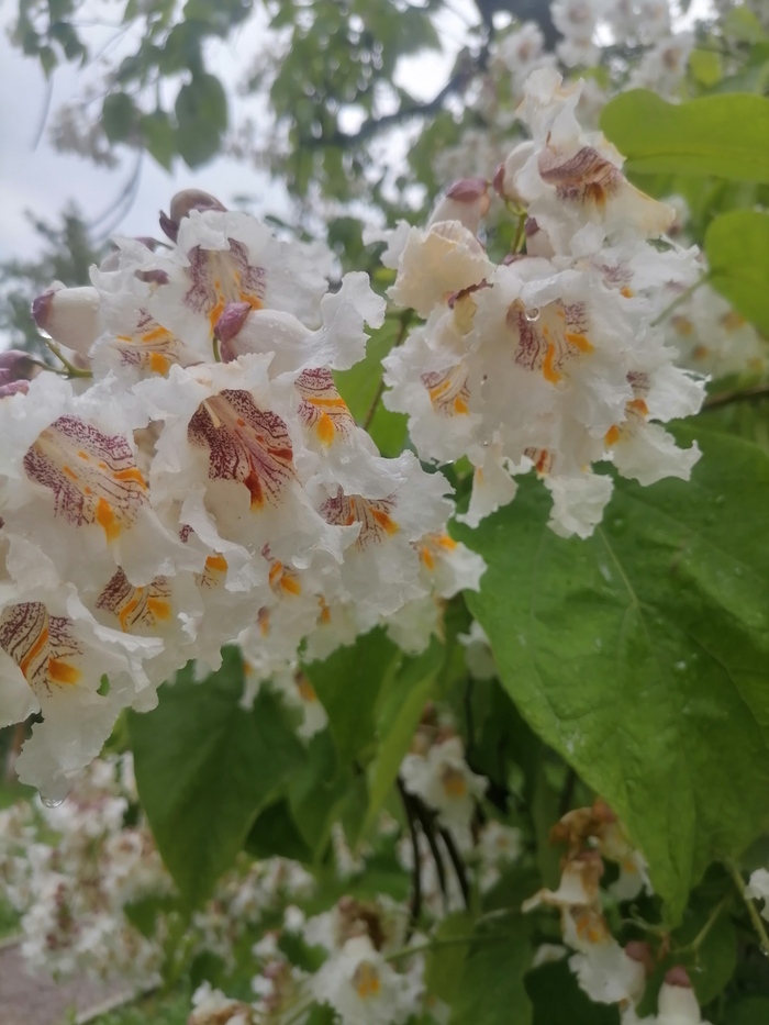 У нас во дворе зацвела катальпа. Для Нижнего Новгорода дерево необычное.