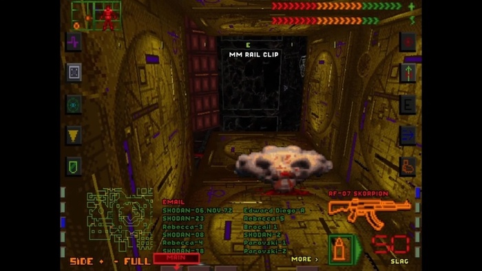 «Все мертвы, а у вас есть аудиожурналы. Которые в то время не были аудиожурналами. Первая партия “System Shock” вышла на дискетах, и там не было оцифрованного звука. Мы только подходили к рубежу игр для CD-ROM. В комплекте с игрой шли текстовые журналы, а затем озвученные», — Гроссман.