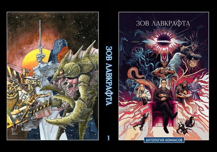 СОСТАВ И АВТОРЫ СБОРНИКА: ЗОВ - комиксация по мотивам рассказов "Ньярлатхотеп" и "Зов Ктулху". Художник - Иван Ешуков. Сценарист - Айк Варданян. "Зов" это комикс-предисловие к циклу "Зов Н.Ё.Х.", предваряющий "Сталинградский рубеж". Да и в целом это о том что предсказания Лавкрафта сбылись и Древние наконец проснулись ввергнув мир в настоящий хаос (но непокорные смертные всё же надеются дать отпор кайдзю Древним). ГОРОД - комиксация "Хребтов безумия", от Аскольда Акишина. СТАЛИНГРАДСКИЙ РУБЕЖ - первая глава комикс-цикла "Зов Н.Ё.Х.", историй в жанре меха-кайдзю с лавкрафтовским уклоном. Художник - Борис Дарт, сценарист - Айк Варданян, арт-директор - Александр Крылов. КОШКИ УЛТАРА - адаптация одноимённого рассказа, художник и сценарист Елизавета Воронина. Елизавета преподаватель комиксов в одной из известнейших Digital-школ России. ЧАЕПИТИЕ У ГОВАРДА - оригинальный комикс звезды мировой манги Олеси Нао, сценаристов Ивана Простецкого и Виталия Савенкова. МУЗЫКА ЭРИХА ЦАННА - комиксация одноимённого рассказа, художница Banish Nightmares, сценарист Айк Варданян. Музыкально-графический эксперимент для настоящих гурманов любящих картинки со звуками. КАРИЕ ГЛАЗА БЕЗДНЫ - пролог оригинального комикс-детектива Романа и Ксении Павловых. ДЕТЕКТИВНОЕ АГЕНТСТВО "АНАНСИ" - еще один детективный комикс по-лавкрафтовски. Автор - Андрей Новащук, художник - Александр Дьяков. ЖЕРТВОПРИНОШЕНИЕ - комикс про жриц Итакуа от Екатерины Захаровой. ИНЫЕ БОГИ - адаптация одноимённого рассказа, сценарист и художник - Семён Фелонюк. ГРИМУАР ТЬМЫ - авторский комикс от Devilhs. АБСОЛЮТНО ЧЁРНОЕ ТЕЛО - постапокалиптическая история по-лавкрафтовски. Художник - Nekota, мастер над фандомами и матер-татуировщик. Сценаристы - Павел Усачёв и Айк Варданян (Усачёв обычно пишет топовые киносценарии и ведёт блог о кино, это его дебют в комиксах). НЕВЕСТА ГЛУБИН - оригинальный комикс Елены Скиталец, мастера остросюжетных комиксов. ПЕРЕЖИВШИЙ ЧЕЛОВЕЧЕСТВО - единственный постапокалиптический рассказ Лавкрафта. Сценарий Айка Варданяна, рисунок - Адама Григоряна.