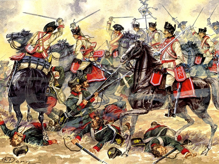 Самой важной частью кавалерии были её ударные части. Защищённые бронёй, на могучих конях, с палашами, способными одним ударом отправить врага на тот свет. Тяжёлая кавалерия взламывала стройные ряды стрелков и вносила хаос в планы полководцев. Такие части сохранились в европейских армиях до Первой мировой войны. А звали их кирасиры.
