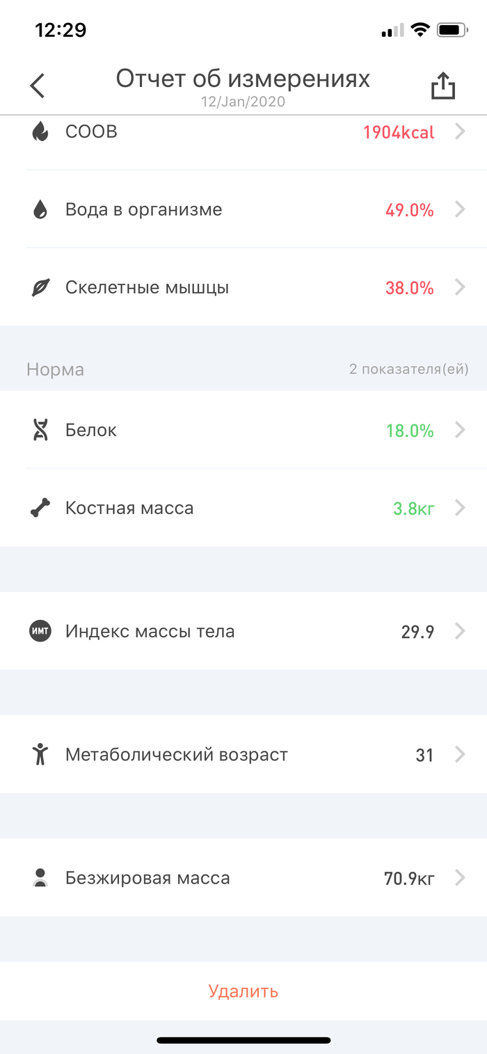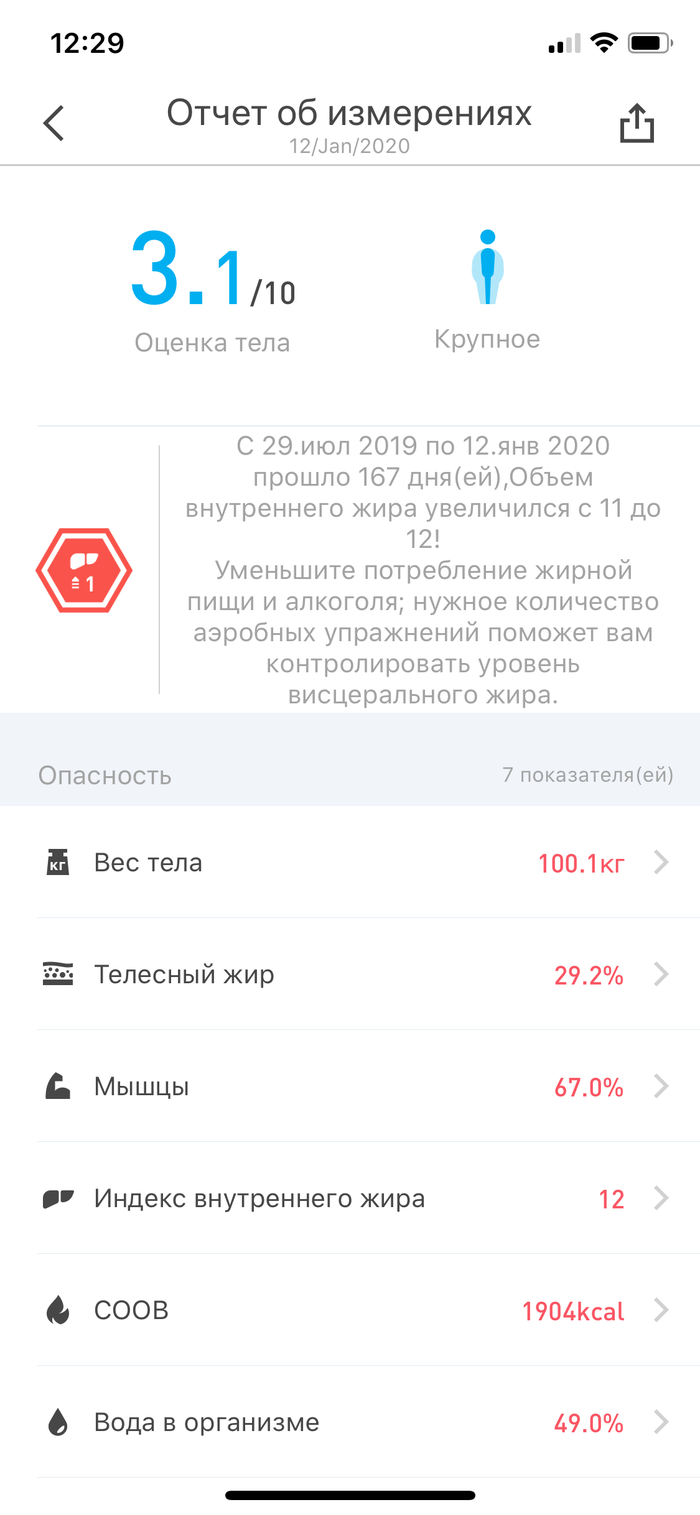 6) раз в неделю взвешивание на умных весах, с целью отслеживания результата по: