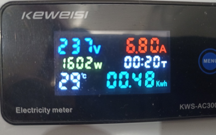 А счетчик, говорит: 1600 ватт((( печаль-беда. Но ладно, разгоняем дальше.