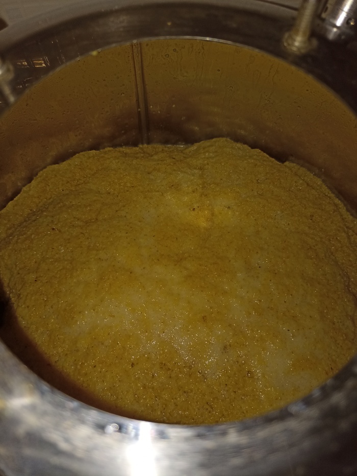 Но если вы всё же решили разварить сырьё для кодзи, то после разваривания его нужно охладить до рабочей температуры Кодзи перед внесением дрожжей. При таком способе брожение ускоряется примерно в три раза. У меня кукурузная брага выбродила за 7 дней.