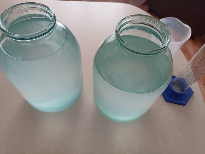 Затем долил еще 10 литров холодной фильтрованной воды. Долго боролся с комками. Как оказалось потом, можно было не париться.
