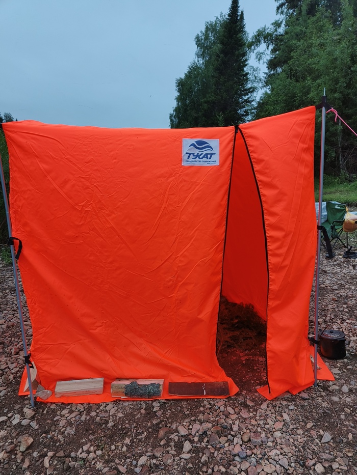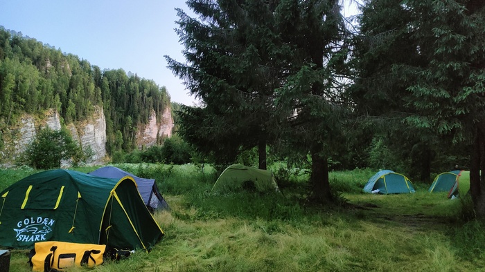 Здесь мы впервые за время путешествия поймали мобильную связь, так что задержались на верху подольше. Обойдя несколько обзорных площадок, мы спустились в лагерь и приступили к приготовлению ужина. В это время по дороге приехала машина, в которой находилась супружеская пара из Санкт-Петербурга с двумя сыновьями. Они также посетили камень и поставили палатку на поляне. За разговорами с ними мы скоротали время до вечера и отправились спать. Отсюда до конца нашего маршрута оставалось 8 км. по реке.