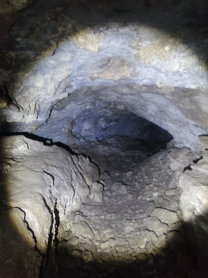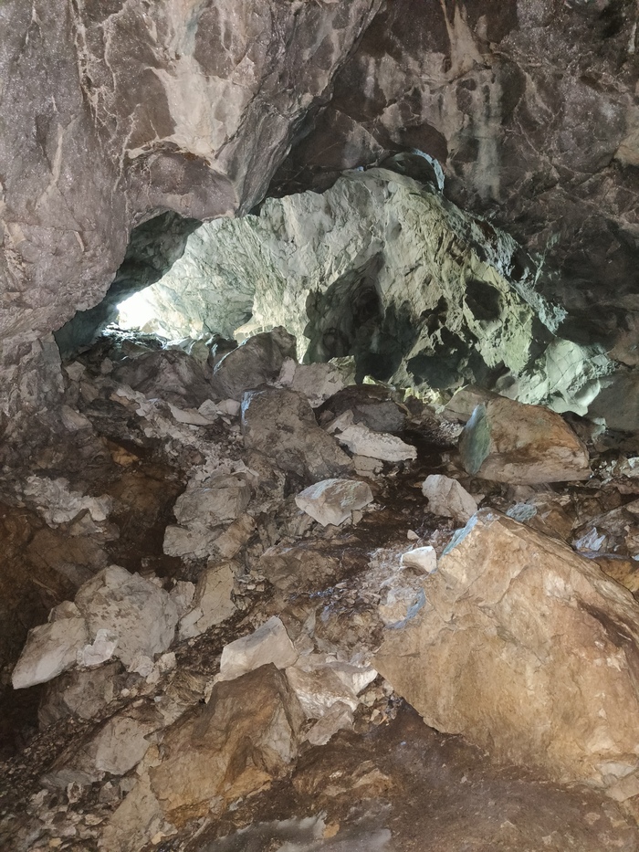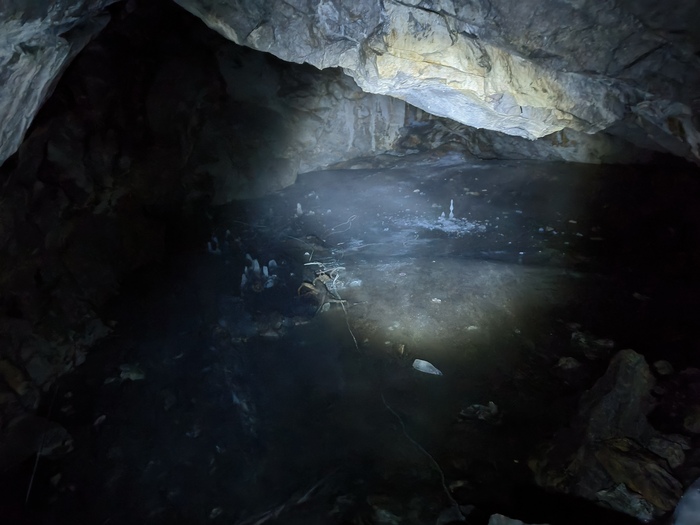 Около входа в пещеру тропа заканчивается, не доходя до верха камня. Вход в пещеру оказался для нас очередным сюрпризом, так как был очень узким и длинным. Пролезть туда можно только ползком и преодолеть таким образом придется несколько десятков метров, так что лишь самые отчаянные спелеологи из нас туда полезли, а остальные, включая меня, остались у входа.
