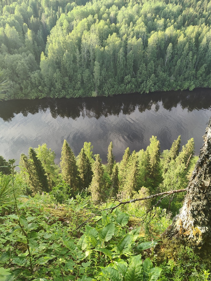 В общем и целом, путешествие прошло в соответствии с планом и без особых происшествий. На обеих реках нам удалось поймать двенадцать разных видов рыб. Змей и животных кроме ондатры нам не встретилось, из птиц попадались чайки, вороны и хищники (ястребы или коршуны), множество уток, лебедь, а также вездесущие коростели. В этом году совершенно аномальное количество насекомых, особенно комаров и клещей. Слепней и в прошлом году было много, примерно столько же и в этот раз. Одним из самых полезных предметов одежды была шляпа с антикомариной сеткой, настоятельно рекомендую иметь с собой на сплаве. Кроме того, в такую не жаркую погоду очень полезны резиновые сапоги. При таком уровне воды перекаты и большие камни отсутствуют, лишь волнами и струями воды выдавая свое присутствие на дне, но пару раз на самых мелких местах нам пришлось покидать катамаран и тащить его по дну. Кругом дремучие леса, не тронутые человеком, деревеньки в основном заброшены, связи с внешним миром нет никакой. На камнях присутствуют тропы, так что их покорение вполне по силам даже не подготовленному человеку, но надо быть осторожным и в дождливую погоду на них лучше не лезть. Вода в Березовой чистая и вполне пригодна к употреблению, а вот из Колвы я бы пить не стал, но на ней довольно часто встречаются ручейки с чистой водой.