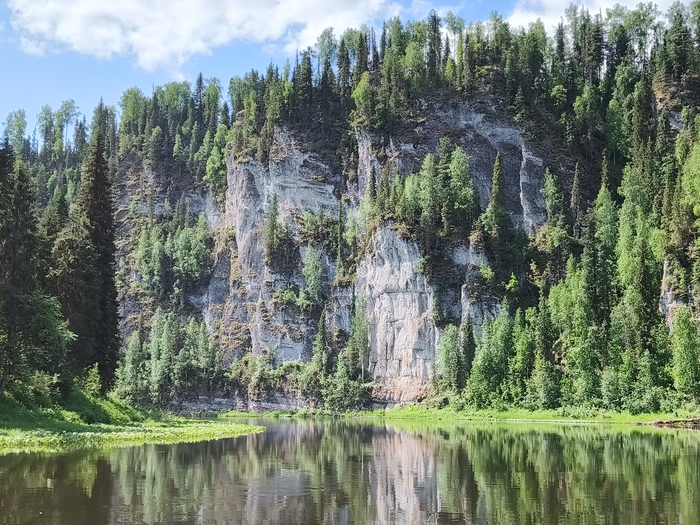 В этих местах в Колву впадает множество ручьев с зеленоватым цветом воды, резко контрастирующим с мутной после слияния с Вишеркой рекой.