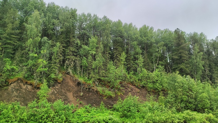 Далее тропа стала очень топкой и грязной. Затем начался крутой подъем в гору, оказавшийся весьма длинным. Пройти его без отдыха для не натренированного человека практически невозможно. Особо красивого вида на реку со склона не открывается, так как его закрывают густо растущие деревья.