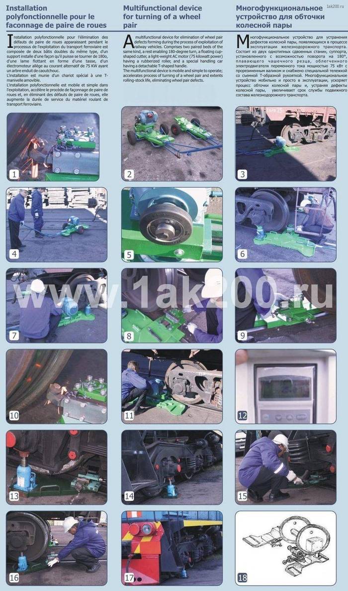 Колесные пары с наружными центрами могут устанавливаться на станке с роликовыми буксами. Пары с внутренними шейками, имеющие общий разъемный корпус для роликоподшипников, обрабатываются на станке без корпуса.