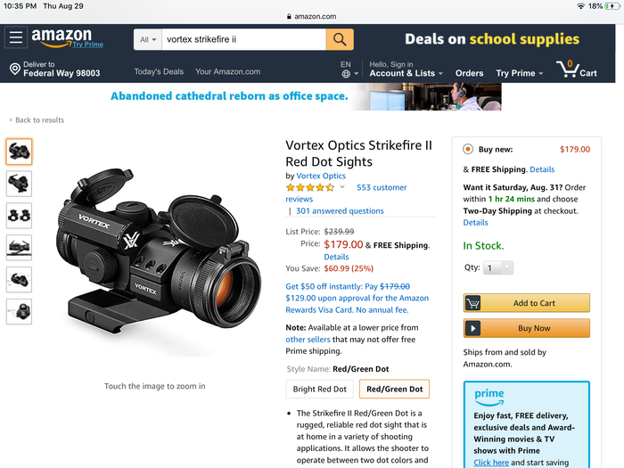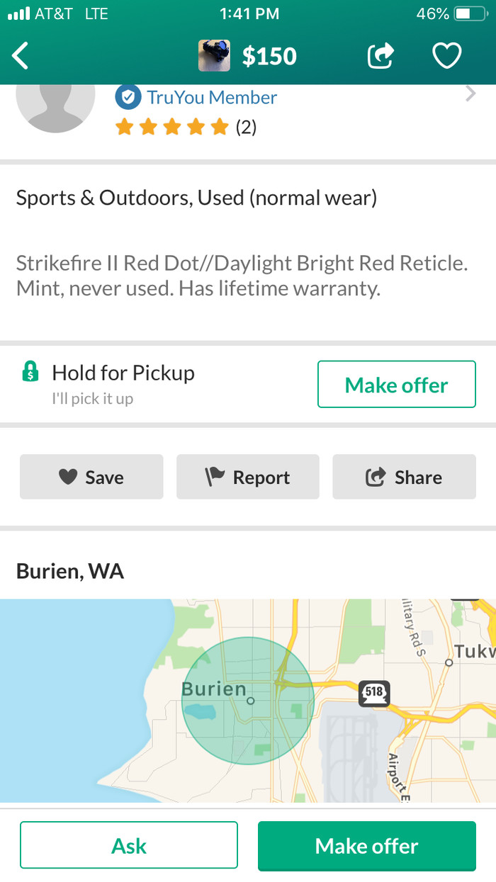 Привет, у нас тут обновка бэ/у.) Шарился по Амазону с месяц назад, в поисках нового коллиматора, по причине отхода предыдущего в мир иной, да так ничего и не купил. Выбор огромен, отзывов — тысячи, а выбрать не выберешь. И тут, сегодня с утра, зашел в приложение— барахолку Офферап и сразу же наткнулся на чела, пытающегося продать свой Vortex Strikefire II, за немножко $150. Фото ниже