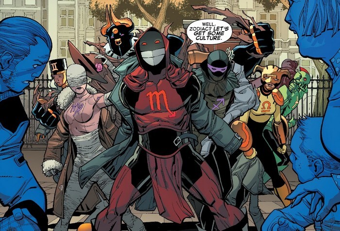 Даймондбэк не против тим-апа, и вообще она в Кэпа быстро влюбляется. Ну и попутно свой ориджин рассказывает. Была пацанкой, росла с братьями, один брат стал вором и его убил полицейский, вот она и обозлилась на закон, а знакомый оружейник подогнал ей метательные кристаллы – острые либо начинённые взрывчаткой или кислотой. Рассказав это, Даймондбэк пытается совратить Капитана на борту Змеелёта, а когда тот отказывается, змеючка угрожает Змеелёт угрохать. Когда блеф не действует, она прям обижается. “С виду красавец мужчина, а сам такой зануда”. Но тут же переобувается, когда Капитан собирается свалить под предлогом “Не могу тебе доверять”. Обещает встать на сторону закона, предлагает раскрыть, где база Змей. А целая толпища суперзлодеев собирается в Безымянном Баре. Смутьян сообщает: “Кто-то нас убивает. Что будем делать?”. Злодеи подают идеи наперебой – “Залечь на дно! Позвать на помощь Мстителей! Убить всех супергероев! Кинуть ему челлендж! Обратиться в Щ.И.Т.!”. И никто не обращает внимания на бармена...а тот достаёт скорострельную пушку с разрывными бронебойными патронами и открывает огонь. Погибают 18 разномастных злодеев. Этим барменом был Бич, и останавливаться на этом Бич не собирается!