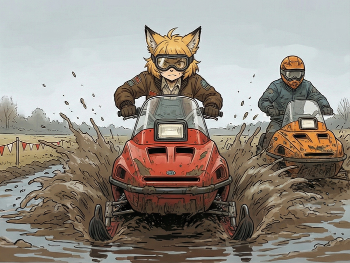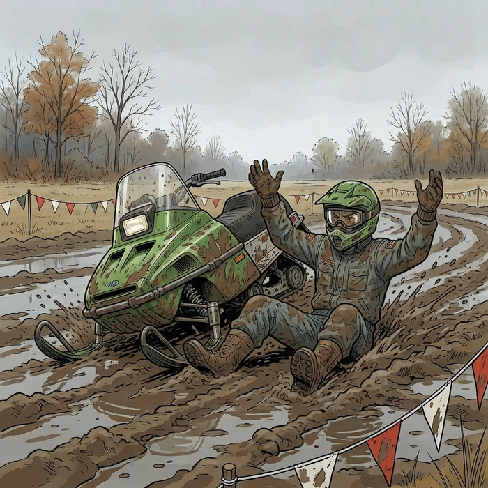 Участники сходят с дистанции один за другим! Снегоходы вязнут, глохнут! Ну, как говорится, рожденный летать - ползать не может!