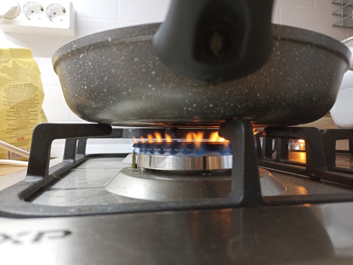 Купил встройку газовую плиту dexp, подключил к ней баллон газа через "лягушку", без кастрюлек вроде горит синим, а ставлю кастрюльку или сковородку - начинает коптить зараза. Уже задрался ядрену копоть оттирать от посуды.